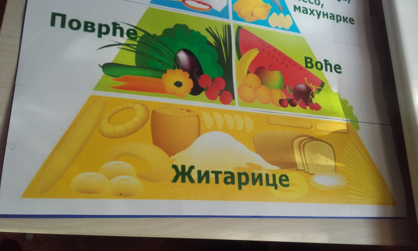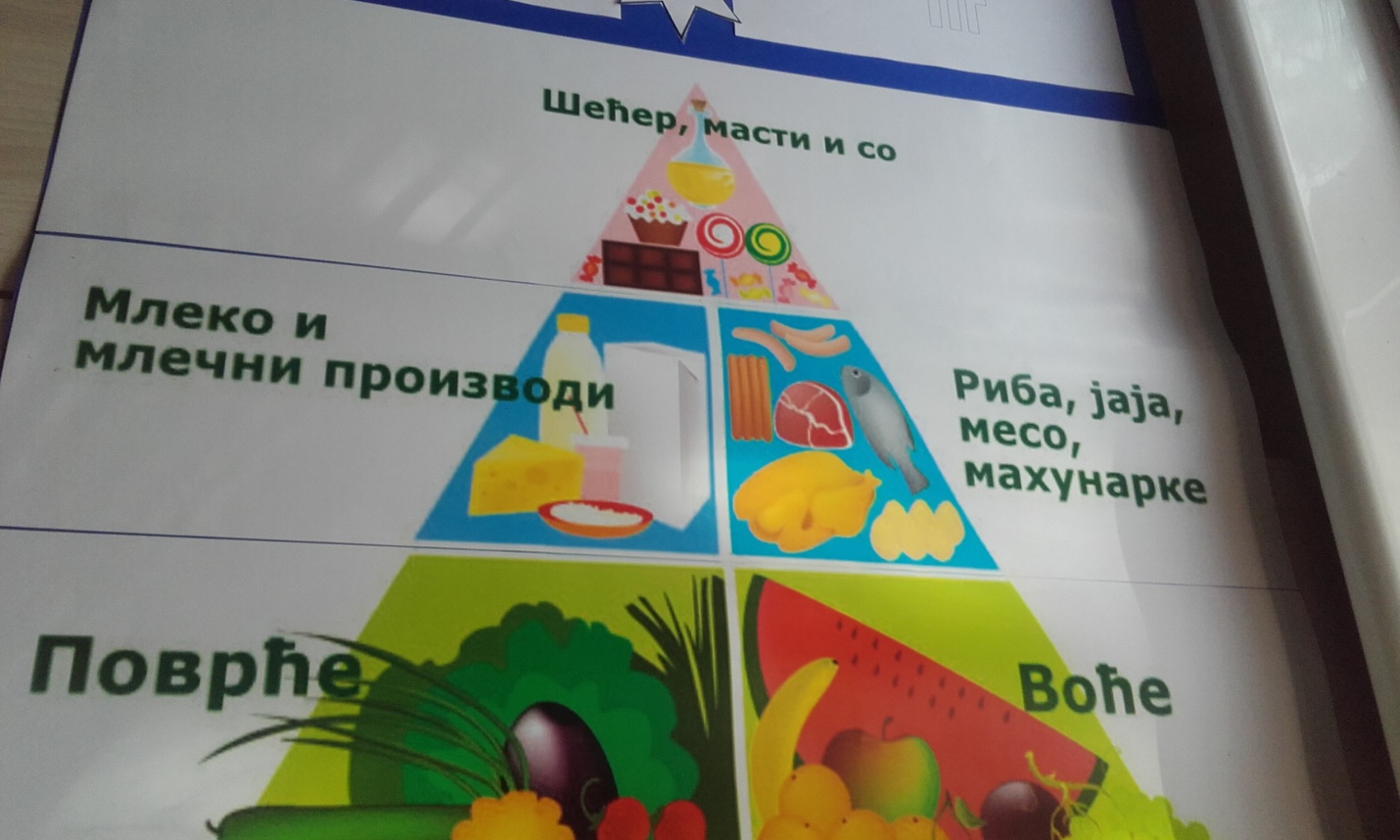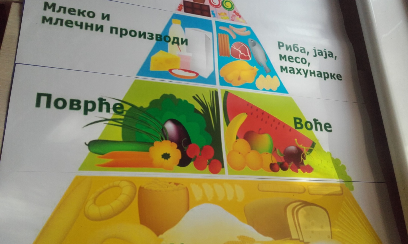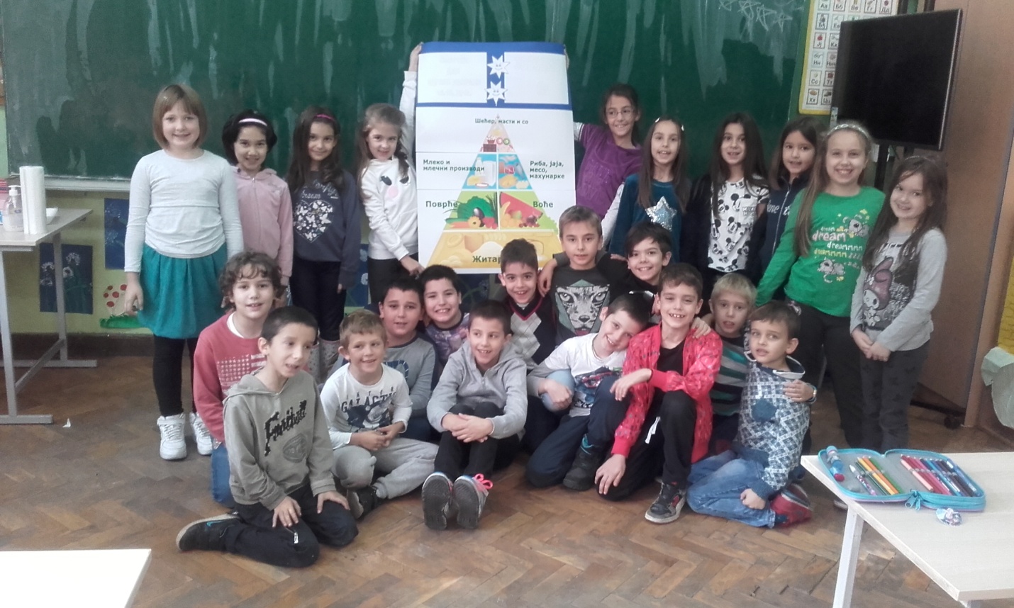 У првом делу часа ученици су са својом учитељицом разговарали о здравој храни (житарицама,воћу и поврћу...),вредностима здраве хране и исхране,шта све спада у здраву храну,зашто је добро јести здраву храну,причали су и о пирамиди исхране и размењивали своја искуства.
